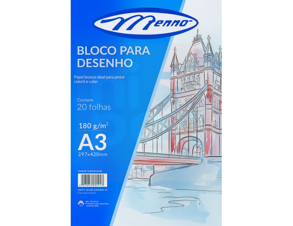 Bloco Desenho A3 180g 20 Folhas Branco - Menno