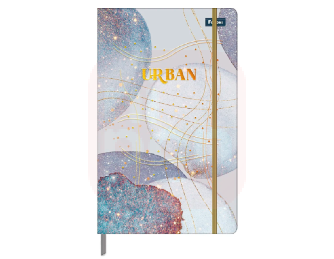 O caderno pontilhado Urban capa dura em laminação brilho e Hot Stamping, fechamento com elástico dourado, fitilho marcador cinza, espiral costurado, adesivo especial, 80 folhas com formato 128x208 e miolo pontilhado. Ideal para o dia a dia na escola ou faculdade.